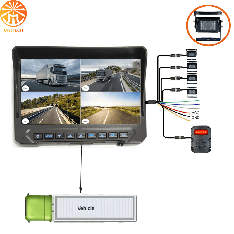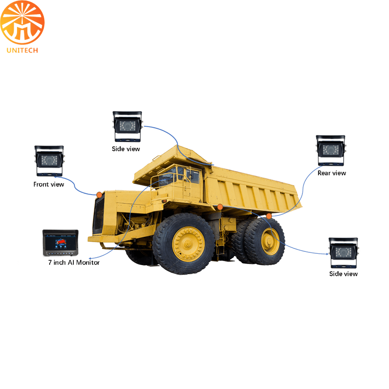 360 Blind Spots Coverage Mining Truck Surround View Camera Mining Security Systems is a highly specialized surveillance solution, featuring a 7-inch waterproof vision system. This 360° view camera system is specifically designed for dump trucks, Commercial trucks, buses, RVs, and special vehicles, aiming to significantly enhance the safety and efficiency of their operations by providing comprehensive visibility and eliminating blind spots.